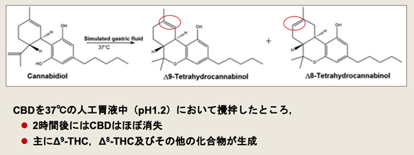 というのは、CBDからΔ9-THCに変換される条件が存在するからです。