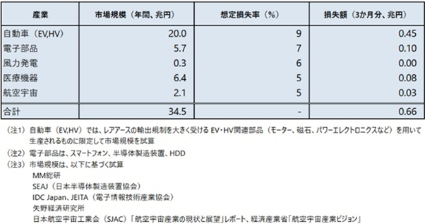 なお、中国からのレアアース輸入停止という事態が起きれば、日本の経済損失は3か月で6,600億円程度にのぼるという試算もあります。年間GDPを0.11%押し下げることになります。